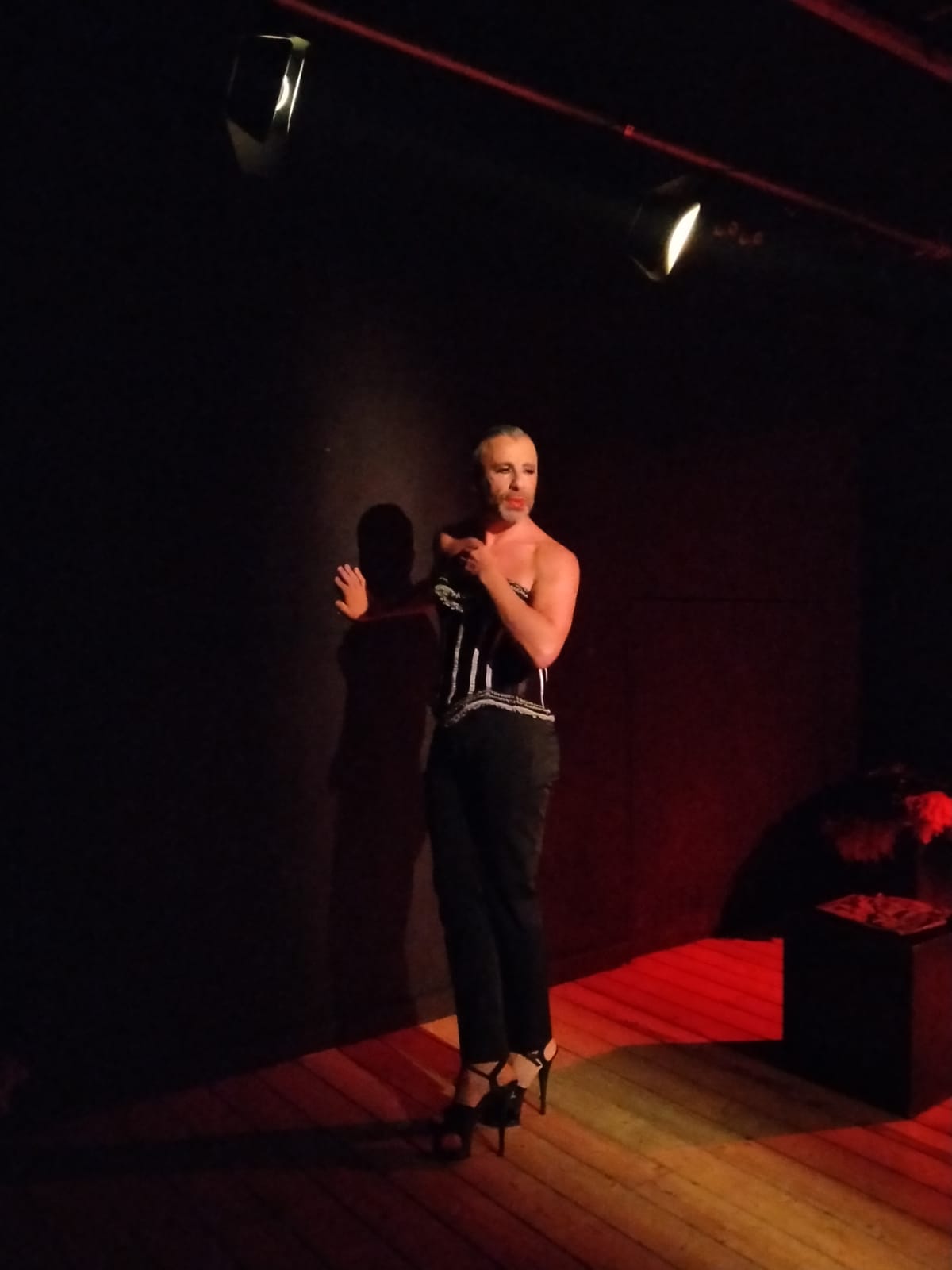 Il travestito nell’attesa continua, non manca di dedicare al suo amato la canzone Se perdo te di Patty Pravo, attraverso una delle storiche radio locali napoletane. Durante tutta la rappresentazione teatrale in più riprese fa la sua apparizione, un’ombra leggera che si muove tra il sogno e la realtà, come una ballerina che danza sulle note di un antico carillon.