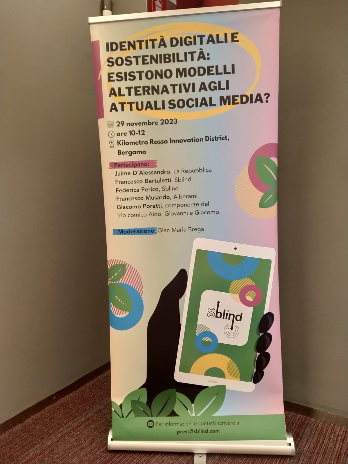 Il nuovo corso in cui si intende andare a collocare Sblind,k è stato presentato al recente convegno tenutosi presso il Kilometro Rosso – Innovation District di Bergamo. Per l’occasione sono stati chiamati a partecipare Jaime D’Alessandro (giornalista di Repubblica, saggista, esperto di tecnologia e cultura digitale), Giacomo Poretti, comico e attore del noto trio “Aldo, Giovanni e Giacomo”, Francesco Bertuletti, CEO in Sblind, Federica Perico di