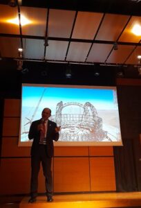 L’ing. Tamai ha illustrato alcuni dettagli tecnici del progetto: si tratta di un telescopio di delicatissima ed ardua realizzazione, costituito da 798 segmenti esagonali di m. 1,5 di diametro ciascuno, da allineare con precisione nanometrica e mantenere costantemente in fase, lottando contro il vento, le deformazioni termiche e le vibrazioni indotte all’interno della struttura. Bisogna inoltre correggerli nel tempo, in quanto la gravità li deforma. Un lavoro complesso, pieno di rischi, per il quale – ci confessa il responsabile del progetto – non riesce a dormire la notte! C’è ovviamente il supporto fondamentale del computer, dell’industria, della tecnica più all’avanguardia, mentre – gli preme sottolineare – non c’è traccia di intelligenza artificiale.