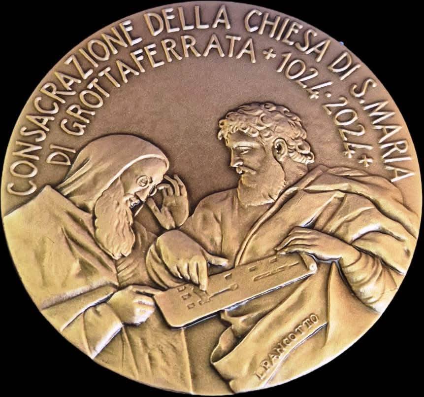 Le medaglie celebrative sono state create dall’artista di fama nazionale Loredana Pancotto su volere dell’Amministrazione Di Bernardo. Sul fronte recano un rilievo raffigurante un particolare dell’affresco del Domenichino presente nella Cappella Farnese della chiesa di Santa Maria: un simbolo forte e suggestivo che intende rendere omaggio alla storia millenaria di questa importante testimonianza religiosa e culturale, del territorio.