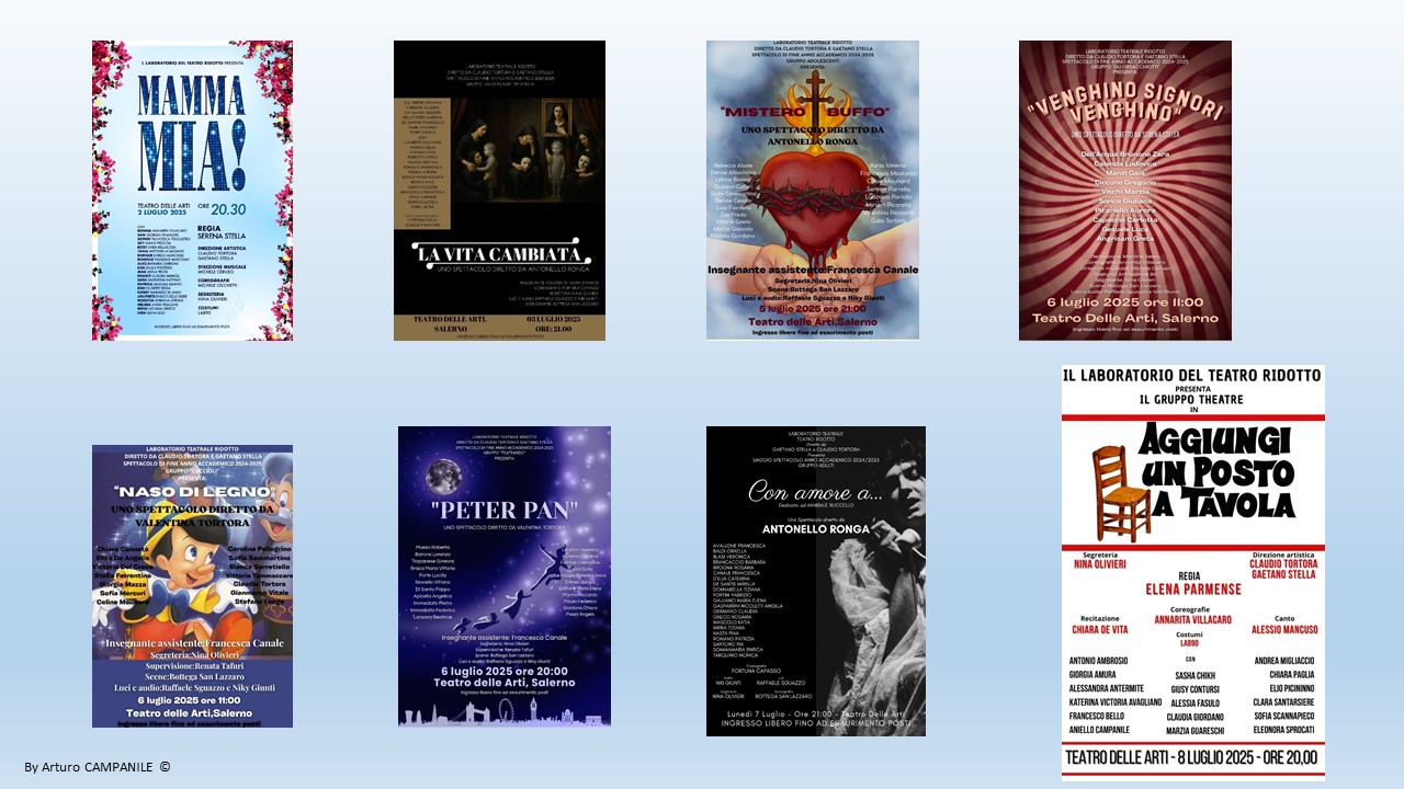 Il Laboratorio Teatrale del Teatro Ridotto, diretto da Claudio TORTORA e Gaetano STELLA, con il coordinamento di Gianluca TORTORA. Offre in chiusura dell’anno accademico 2024/2025 una vera perla mettendo in scena una settimana di spettacoli con protagonisti gli allievi di tutte le età. Questa kermesse di notevole qualità si è svolta dal 2 all’8 luglio 2025 sempre al Teatro Delle Arti di Salerno.