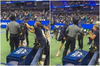Tutti vogliono un 'pezzo' di Jannik Sinner, qualcuno anche troppo. Dopo la vittoria negli ottavi degli Us Open 2025 contro Alexander Bublik, match in cui il tennista azzurro si è imposto nettamente in tre set con il punteggio di 6-1, 6-1, 6-1, regalandosi il derby azzurro contro Lorenzo Musetti ai quarti. Al termine della partita il numero uno azzurro si è dovuto però difendere da un tentativo di 'furto' da parte di uno spettatore, che da bordocampo si è reso protagonista di un comportamento decisamente troppo invasivo. L'uomo, quando Sinner si è girato di spalle, ha allungato la mano per provare ad aprire la cerniera del suo borsone. Un chiaro modo per rubare qualcosa, un asciugamano, un indumento o qualsiasi tipo di souvenir, dal numero uno. Immediato però l'intervento della security che stava accompagnando il tennista italiano, che ha subito allontanato l'uomo. Anche Sinner si è accorto dell'accaduto e ha fulminato con lo sguardo lo spettatore, che poi ha unito le mani come per chiedere scusa. —sportwebinfo@adnkronos.com (Web Info)