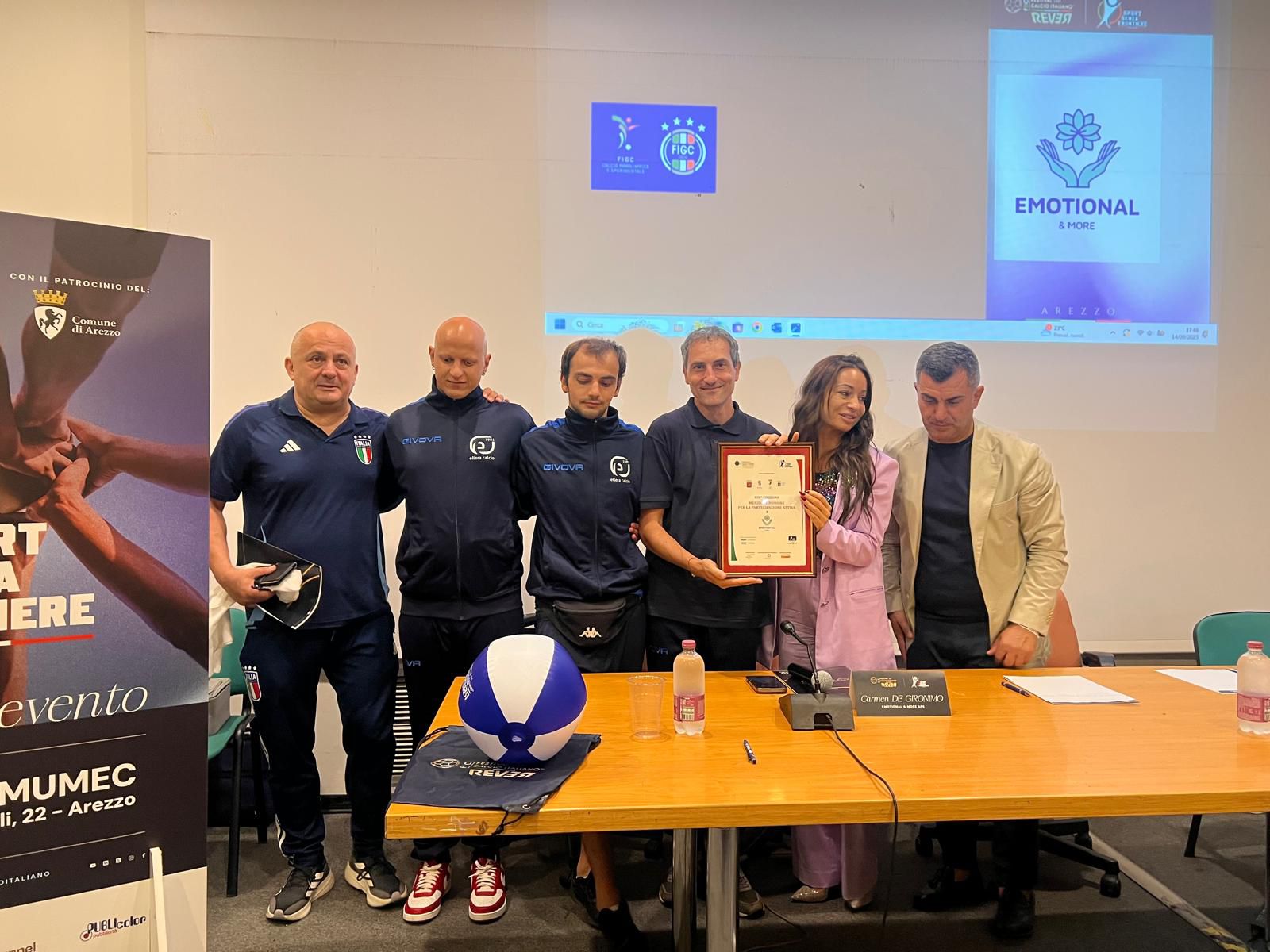 Nell’ambito della XIV edizione del Festival del Calcio Italiano, che si è svolto nei giorni scorsi ad Arezzo, durante la giornata-evento “Sport Senza Frontiere”, l’associazione Emotional & More APS, guidata dalla presidente Carmen De Gironimo, ideatrice di tutti i Forum dedicati al binomio sport ed emozione, ha ricevuto una Menzione d’Onore per la partecipazione attiva.