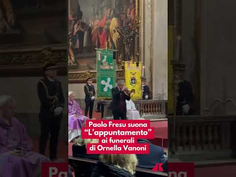 È uscito dal fondo della navata della chiesa di San Marco, Paolo Fresu, suonando le note di ‘L’appuntamento’ e poi un accenno di ‘Senza fine’ fino ad avvicinarsi alla bara di Ornella Vanoni, sfiorandola con la mano. Il trombettista e compositore jazz, visibilmente emozionato, ha voluto omaggiare così la cantante, sua grande amica, nel giorno della cerimonia funebre a Milano. La stessa Vanoni aveva chiesto a Fresu di suonare ai suoi funerali e così è stato, in un momento di grande emozione.