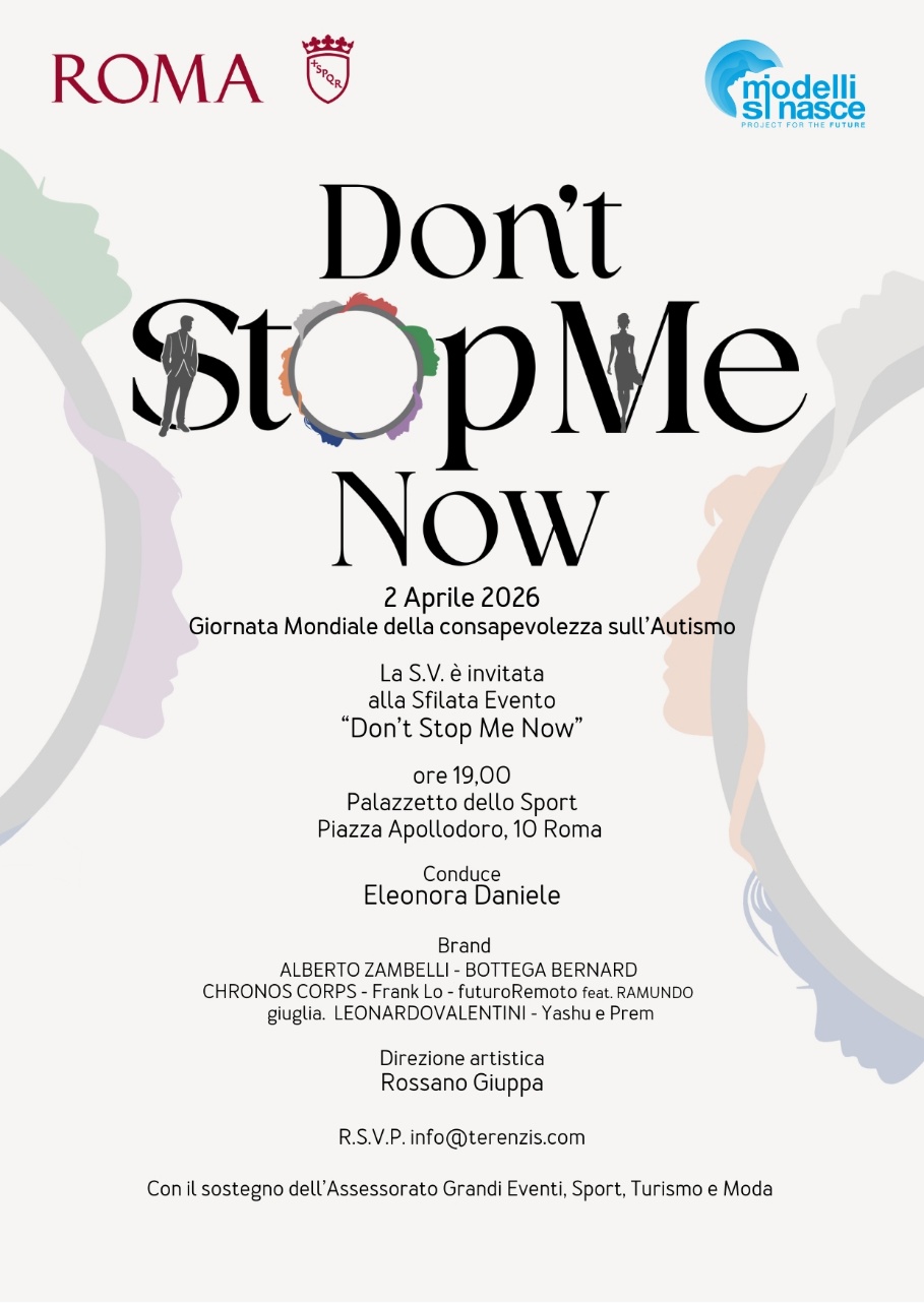 Da un piccolo gruppo di 5 famiglie, oggi l’associazione conta oltre 100 iscritti ed è diventata una realtà unica in Italia: la prima a offrire percorsi formativi personalizzati che accompagnano ragazzi autistici verso il mondo della moda, preparandoli a diventare modelli e fotomodelli professionisti. “Don’t Stop Me Now” è un invito potente: non fermarsi davanti alle difficoltà, non fermare i sogni, non fermare il cambiamento. Un evento che celebra l’inclusione come valore concreto, la diversità come ricchezza e la moda come linguaggio universale capace di unire, emozionare e trasformare. Un appuntamento imperdibile per chi crede in un futuro più aperto, più consapevole, più umano.